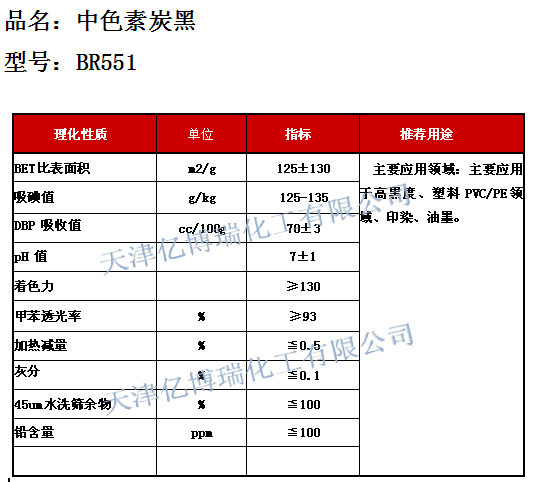 性能:后处理炉法炭黑。粒度细,